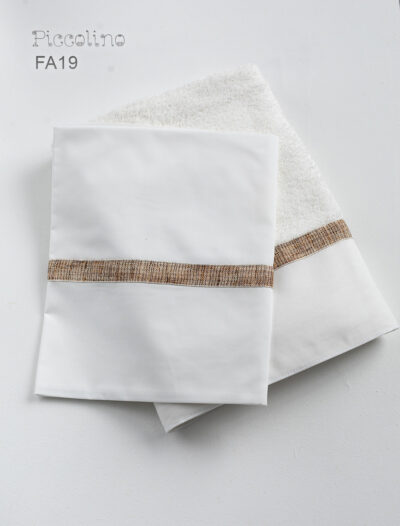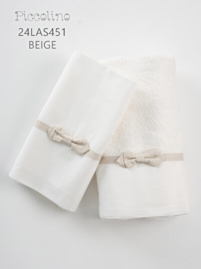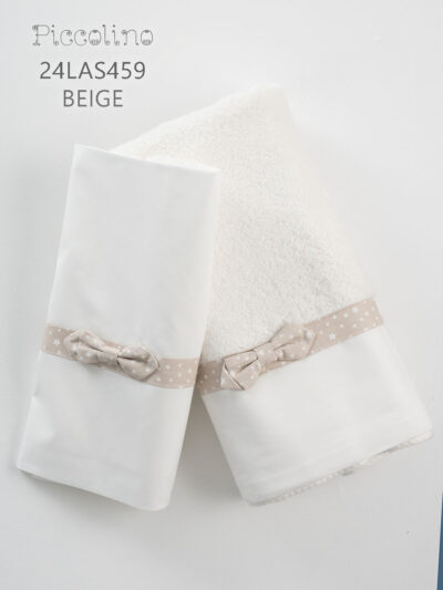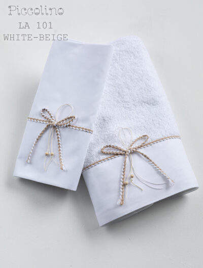 Σετ λαδόπανα Piccolino LA101 WHITE-BEIGE. Αποτελείται απο βαμβακερό λαδόπανο, πετσέτα 140*70εκ, εσώρουχα και πετσέτα ιερέα 30*50εκ.