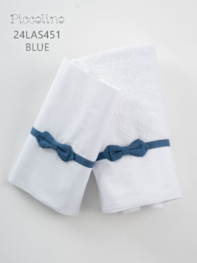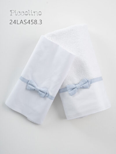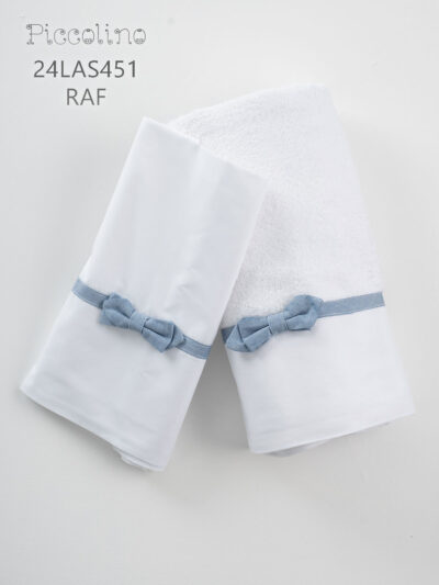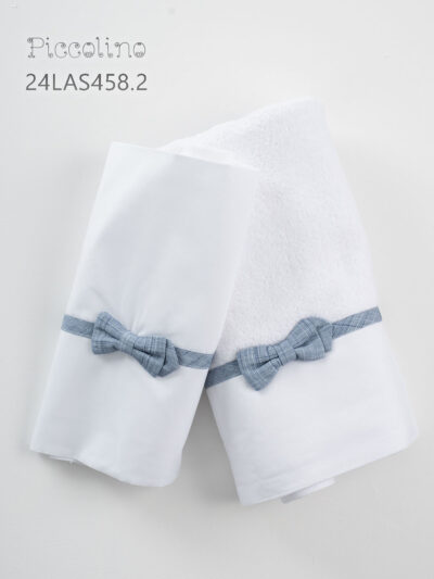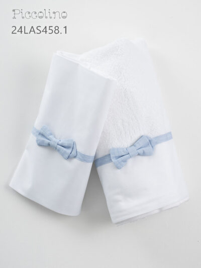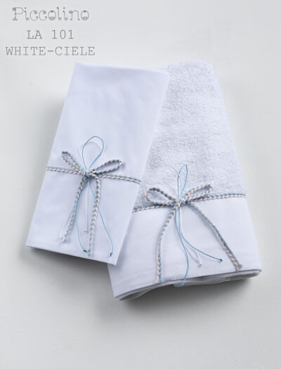 Σετ λαδόπανα Piccolino LA101 WHITE-CIELE. Αποτελείται απο βαμβακερό λαδόπανο, πετσέτα 140*70εκ, εσώρουχα και πετσέτα ιερέα 30*50εκ.