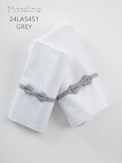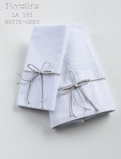 Σετ λαδόπανα Piccolino LA101 WHITE-GREY. Αποτελείται απο βαμβακερό λαδόπανο, πετσέτα 140*70εκ, εσώρουχα και πετσέτα ιερέα 30*50εκ.