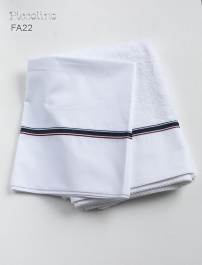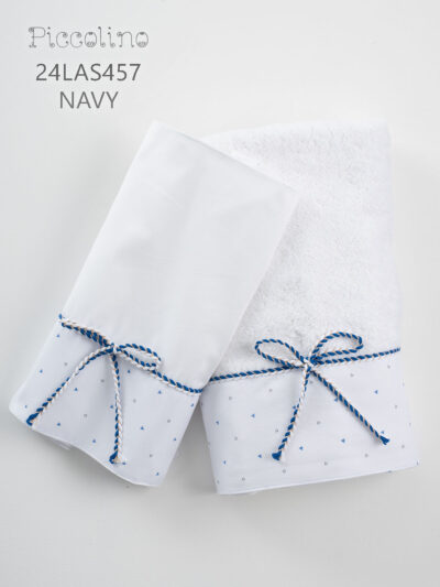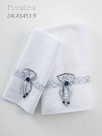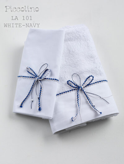 Σετ λαδόπανα Piccolino LA101 WHITE-NAVY. Αποτελείται απο βαμβακερό λαδόπανο, πετσέτα 140*70εκ, εσώρουχα και πετσέτα ιερέα 30*50εκ.