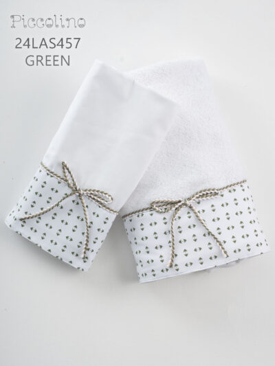 Σετ λαδόπανα Piccolino LA101 IVORY-GREEN. Αποτελείται απο βαμβακερό λαδόπανο, πετσέτα 140*70εκ, εσώρουχα και πετσέτα ιερέα 30*50εκ.