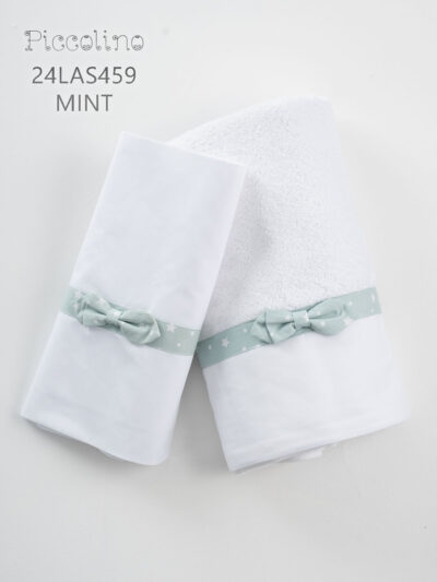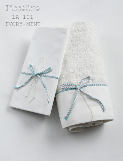 Σετ λαδόπανα Piccolino LA101 IVORY-MINT. Αποτελείται απο βαμβακερό λαδόπανο, πετσέτα 140*70εκ, εσώρουχα και πετσέτα ιερέα 30*50εκ.