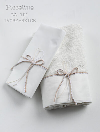 Σετ λαδόπανα Piccolino LA101 IVORY-BEIGE. Αποτελείται απο βαμβακερό λαδόπανο, πετσέτα 140*70εκ, εσώρουχα και πετσέτα ιερέα 30*50εκ.