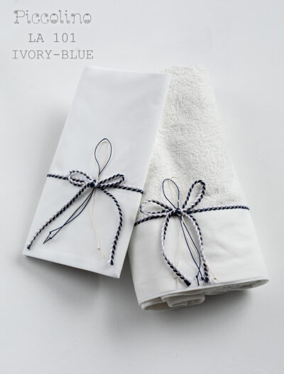 Σετ λαδόπανα Piccolino LA101 IVORY-BLUE. Αποτελείται απο βαμβακερό λαδόπανο, πετσέτα 140*70εκ, εσώρουχα και πετσέτα ιερέα 30*50εκ.