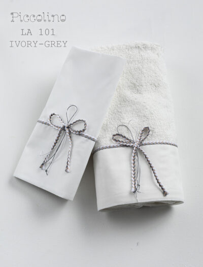Σετ λαδόπανα Piccolino LA101 IVORY-GREY. Αποτελείται απο βαμβακερό λαδόπανο, πετσέτα 140*70εκ, εσώρουχα και πετσέτα ιερέα 30*50εκ.