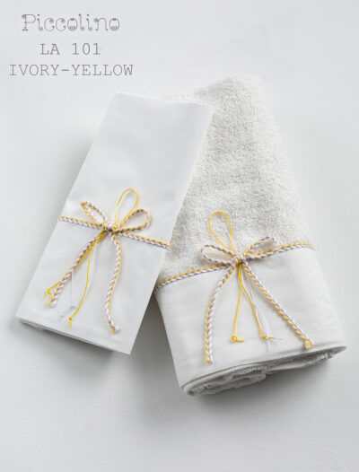 Σετ λαδόπανα Piccolino LA101 IVORY-YELLOW. Αποτελείται απο βαμβακερό λαδόπανο, πετσέτα 140*70εκ, εσώρουχα και πετσέτα ιερέα 30*50εκ.