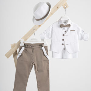 Σετ λαδόπανα Piccolino LA-CHARLES BEIGE. Αποτελείται απο βαμβακερό λαδόπανο, πετσέτα 140*70εκ, εσώρουχα και πετσέτα ιερέα 30*50εκ. Συνδυάζεται με το κοστούμι PICCOLINO CHARLES BEIGE