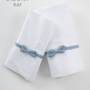Σετ λαδόπανα Piccolino LA101 WHITE-CIELE. Αποτελείται απο βαμβακερό λαδόπανο, πετσέτα 140*70εκ, εσώρουχα και πετσέτα ιερέα 30*50εκ.