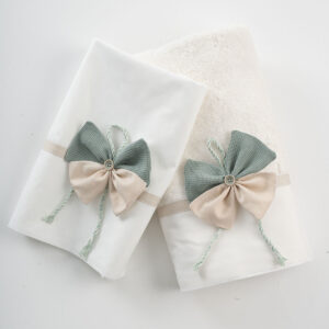 Σετ λαδόπανα Piccolino LA101 IVORY-GREEN. Αποτελείται απο βαμβακερό λαδόπανο, πετσέτα 140*70εκ, εσώρουχα και πετσέτα ιερέα 30*50εκ.