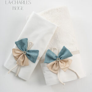 Σετ λαδόπανα Piccolino LA101 IVORY-BLUE. Αποτελείται απο βαμβακερό λαδόπανο, πετσέτα 140*70εκ, εσώρουχα και πετσέτα ιερέα 30*50εκ.