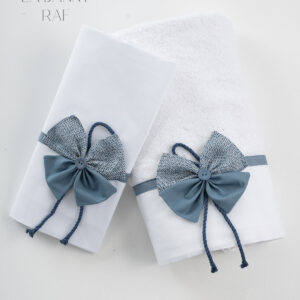 Σετ λαδόπανα Piccolino. Αποτελείται απο βαμβακερό λαδόπανο, πετσέτα 140*70εκ, εσώρουχα και πετσέτα ιερέα 30*50εκ. LA-FRANCISCO.BLUEWHITE