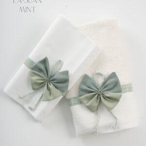 Σετ λαδόπανα Piccolino. Αποτελείται απο βαμβακερό λαδόπανο, πετσέτα 140*70εκ, εσώρουχα και πετσέτα ιερέα 30*50εκ. LA-FRANCISCO.MINTWHITE