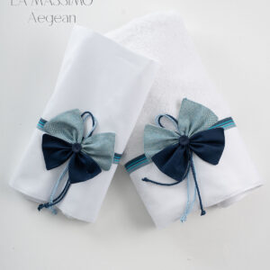Σετ λαδόπανα Piccolino LA-MASSIMO AEGEAN. Αποτελείται απο βαμβακερό λαδόπανο, πετσέτα 140*70εκ, εσώρουχα και πετσέτα ιερέα 30*50εκ. Συνδυάζεται με το κοστούμι PICCOLINO MASSIMO AEGEAN