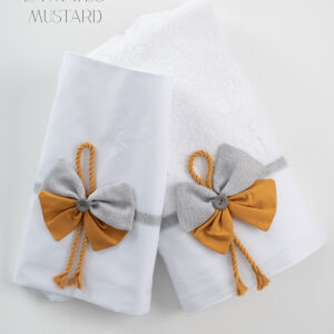 Σετ λαδόπανα Piccolino LA-MATEO MUSTARD. Αποτελείται απο βαμβακερό λαδόπανο, πετσέτα 140*70εκ, εσώρουχα και πετσέτα ιερέα 30*50εκ. Συνδυάζεται με το κοστούμι PICCOLINO MATEO MUSTARD
