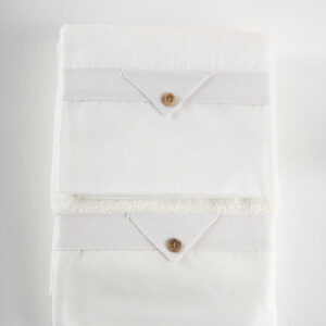 Σετ λαδόπανα Piccolino LA-ROMEO WHITE. Αποτελείται απο βαμβακερό λαδόπανο, πετσέτα 140*70εκ, εσώρουχα και πετσέτα ιερέα 30*50εκ. Συνδυάζεται με το κοστούμι PICCOLINO ROMEO WHITE