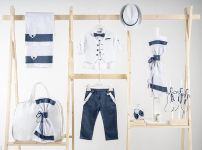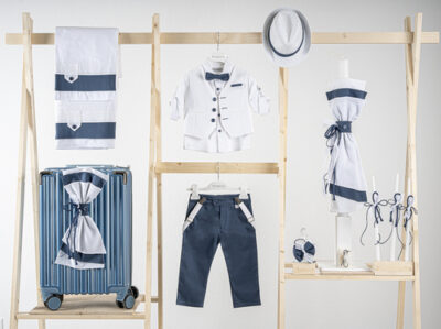 Βαπτιστικό πακέτο Piccolino Lorenzo cobalt περιλαμβάνει κοστούμι ,σετ λαδόπανα, λαμπάδα, λαδοσετ και στολισμένη βαλίτσα raf