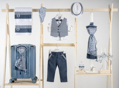 Βαπτιστικό πακέτο Piccolino Pablo cobalt περιλαμβάνει κοστούμι ,σετ λαδόπανα, λαμπάδα, λαδοσετ και στολισμένη βαλίτσα raf