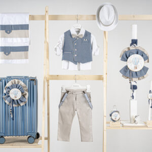Βαπτιστικό πακέτο Piccolino Pablo beige περιλαμβάνει κοστούμι ,σετ λαδόπανα, λαμπάδα, λαδοσετ και στολισμένη βαλίτσα CREAM