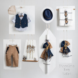 Σετ βάπτισης Piccolino ROMEO SAFARI. Περιλαμβάνει λαδόπανο (πετσέτα 450gsm και σεντόνι 70*140εκ, εσώρουχα και πετσέτα ιερέα), λαμπάδα στολισμένη, στολισμό συσκευασίας (μπραντς), λαδοσέτ (στολισμένα 3κεράκια, μπουκαλάκι,σαπούνι) .Το ρούχο δεν περιλαμβάνεται στην τιμη του σετ βάπτισης.
