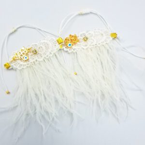 Βραχιόλι, μπεζ δέρμα, λευκές πέρλες, ημιδιάφανα σάπιο μήλο κρυσταλλάκια και φτερό σάπιο μήλο, για την μαμά, την νονά, την θεία, την αδερφή και την γιαγιά. Οι φωτογραφίες έχουν υποστεί επεξεργασία και τα χρώματα ίσως να διαφέρουν λίγο στην πραγματικότητα. Η Τιμή αφορά συσκευασία 2 τεμαχίων.