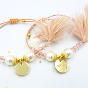 Βραχιόλι, μπεζ δέρμα, λευκές πέρλες, ημιδιάφανα σάπιο μήλο κρυσταλλάκια και φτερό σάπιο μήλο, για την μαμά, την νονά, την θεία, την αδερφή και την γιαγιά. Οι φωτογραφίες έχουν υποστεί επεξεργασία και τα χρώματα ίσως να διαφέρουν λίγο στην πραγματικότητα. Η Τιμή αφορά συσκευασία 2 τεμαχίων.