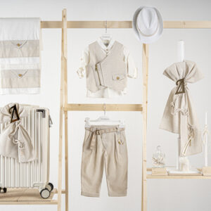 Σετ λαδόπανα Piccolino LK-TIFFANY CHAMPAGNE. Αποτελείται απο βαμβακερό λαδόπανο, πετσέτα 140*70εκ, εσώρουχα και πετσέτα ιερέα 30*50εκ. Στολισμένα με χειροποίητα υφασμάτινα λουλούδια. Συνοδευτικό του φορέματος Piccolino TIFFANY CHAMPAGNE