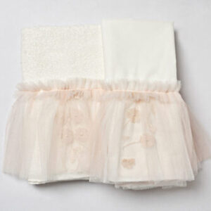 Σετ λαδόπανα Piccolino LK-TIFFANY IVORY. Αποτελείται απο βαμβακερό λαδόπανο, πετσέτα 140*70εκ, εσώρουχα και πετσέτα ιερέα 30*50εκ. Στολισμένα με χειροποίητα υφασμάτινα λουλούδια. Συνοδευτικό του φορέματος Piccolino TIFFANY IVORY