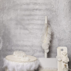 Βαπτιστικό πακέτο βγαλμένο από μια άλλη εποχή. Πούπουλα marabou ,πέρλες,κρύσταλλα και λευκό τούλι για μια ξεχωριστή βάπτιση που περιλαμβάνει ξύλινο κουτί και σετ λαδιού (χωρίς την βάση) .Κάθε πακέτο βάπτισης μπορεί να στολιστεί με οποιοδήποτε ρούχο και θέμα της επιλογής σας.