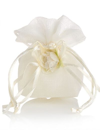 Μπομπονιέρα Πουγκί 14x20cm από μετάξι σαντούκ. Σε ivory απόχρωση. Διαφορετικές διαστάσεις κατόπιν συνεννόησης Διάστ.: 14x20cm με κουφέτα Χατζηγιαννάκης