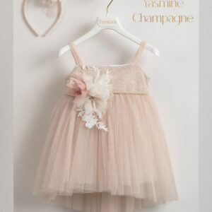 Σετ λαδόπανα Piccolino LK-TIFFANY CHAMPAGNE. Αποτελείται απο βαμβακερό λαδόπανο, πετσέτα 140*70εκ, εσώρουχα και πετσέτα ιερέα 30*50εκ. Στολισμένα με χειροποίητα υφασμάτινα λουλούδια. Συνοδευτικό του φορέματος Piccolino TIFFANY CHAMPAGNE