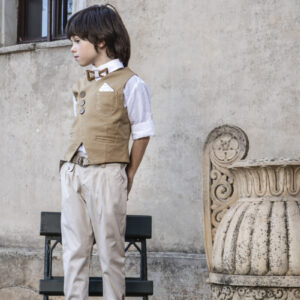Βαπτιστικό κοστούμι Be Fabulous Oliver σε χρώμα Beige. Περιλαμβάνει λινό γιλέκο σε Μπεζ αποχρώσεις , λινό πουκάμισο ιβουάρ, λινό παντελόνι με πιέτες σε μπεζ απόχρωση, λινό παπιγιόν, ζώνη και καπέλο με φάσα. Διαθέσιμο σε 4 μεγέθη 6-12, 12-18, 18-24, 24-36(εξτρά χρέωση)