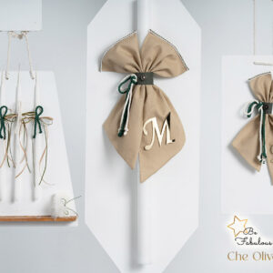 Σετ βάπτισης Be Fabulous CHE OLIVE. Περιλαμβάνει λαδόπανο (πετσέτα 450gsm και σεντόνι 70*140εκ, εσώρουχα και πετσέτα ιερέα), λαμπάδα στολισμένη, στολισμό συσκευασίας (μπραντς), λαδοσέτ (στολισμένα 3κεράκια, μπουκαλάκι,σαπούνι) .Το ρούχο δεν περιλαμβάνεται στην τιμη του σετ βάπτισης.