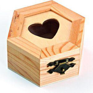 Μπομπονιέρα ΞΥΛΙΝΗ ΜΠΙΖΟΥΤΙΕΡΑ ΟΡΕΝ WINDOW ΚΑΡΔΙΑ ΕΞΑΓΩΝΗ 7Χ7Χ4Υ με κουφέτα Χατζηγιαννάκης