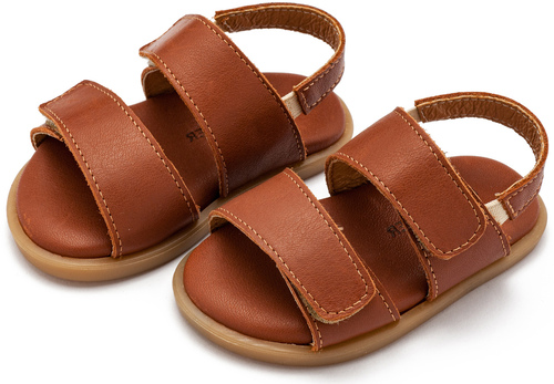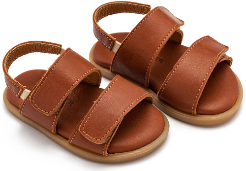 GR0112-CAMEL1 Δερμάτινο Σανδάλι Διπλή Μπαρέτα Χρατσ σε Ταμπά Χρώμα