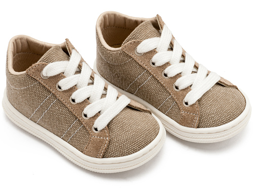 BS3087-FLINT1 Δίχρωμα Υφασμάτινα Δετά Σνίκερ από Ύφασμα και Δέρμα σε Πούρο Χρώμα