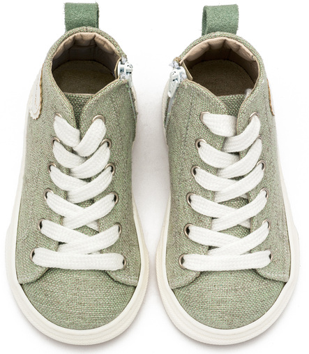 EXC5301-FISTIKI1 Υφασμάτινο Δετό Μποτάκι Sneaker με Φερμουάρ στο Πλάι σε Φυστικί Χρώμα