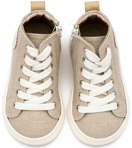 EXC5301-BEIGE1 Υφασμάτινο Δετό Μποτάκι Sneaker με Φερμουάρ στο Πλάι σε Μπεζ Χρώμα