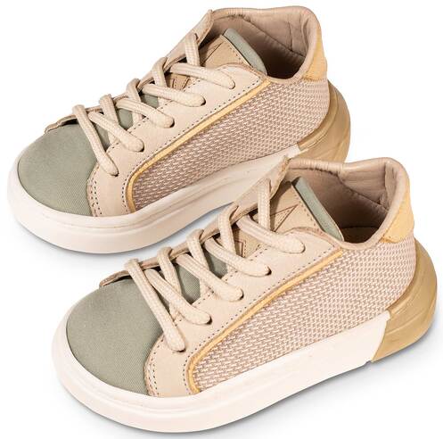 EXC5280-BEIGE-MINT1 Δίχρωμο Δετά Sneaker απο Δέρμα και Ύφασμα σε Μπεζ Μέντα Χρώμα