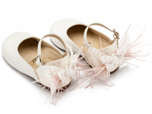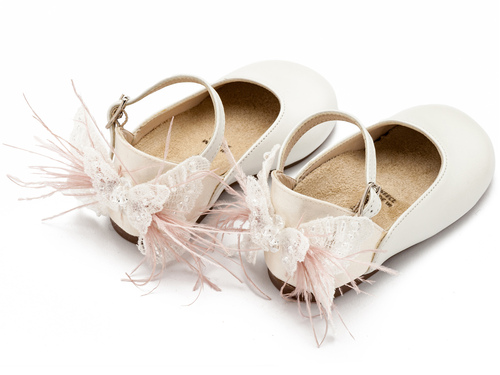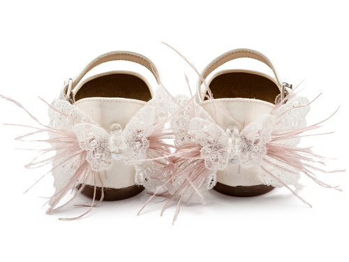 BW4866-IVORY-PINK1 Γαλλικό Γοβάκι με Διακοσμημένη Φτέρνα με Υφασμάτινη Πεταλούδα σε Εκρού Ροζ Χρώμα
