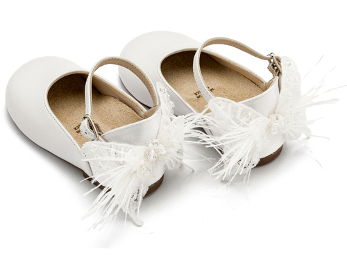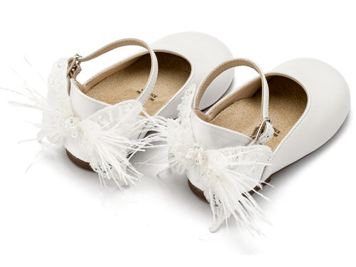 BW4866-WHITE1 Γαλλικό Γοβάκι με Διακοσμημένη Φτέρνα με Υφασμάτινη Πεταλούδα σε Λευκό Χρώμα