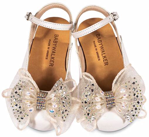 BW4828-IVORY1 Δερμάτινο Γαλλικό Σαμπό με Φιόγκο Οργάντζας και Στρας σε Εκρού Χρώμα