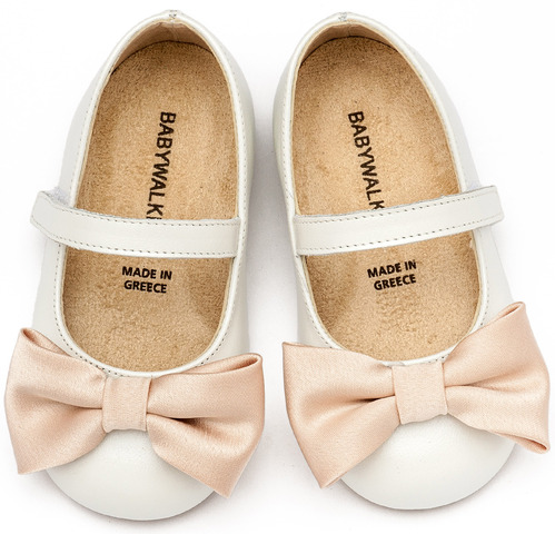 BW4865-IVORY-BEIGE1 Δερμάτινο Γοβάκι Μονή Μπαρέτα Χρατς με Σατέν Χειροποίητο Φιογκάκι σε Εκρού Μπεζ Χρώμα
