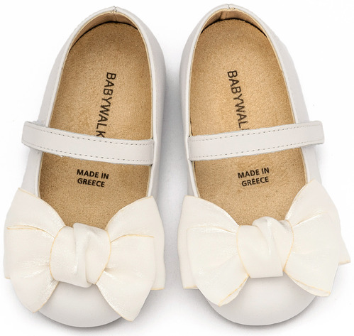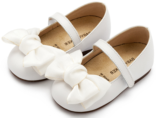 BW4857-WHITE1 Δερμάτινο Γοβάκι Μονή Μπαρέτα Χρατς με Υφασμάτινο Φιόγκο Οργάντζας σε Λευκό Χρώμα