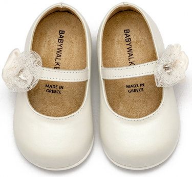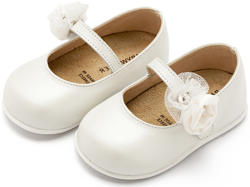 PRI2642-IVORY1 Δερμάτινο Γοβακι Μονή Μπαρέτα με Χειροποίητο Διακοσμητικό με Λουλούδια στο πλάι από Δέρμα Πέρλα σε Εκρού Χρώμα