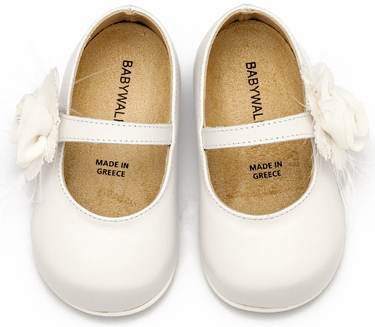 PRI2640-WHITE1 Δερμάτινο Γοβακι Μονή Μπαρέτα με Χειροποίητο Λουλουδάκι με Πούπουλα από Δέρμα Νάπα σε Λευκό Χρώμα