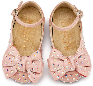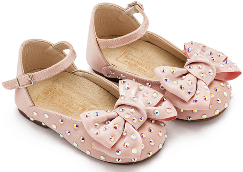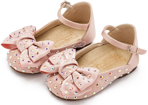 LU6121-PINK1 Γαλλικό Γοβάκι από Satin Ύφασμα Φιόγκο Οργάντζας και Στρας Swarovski σε Ροζ Χρώμα