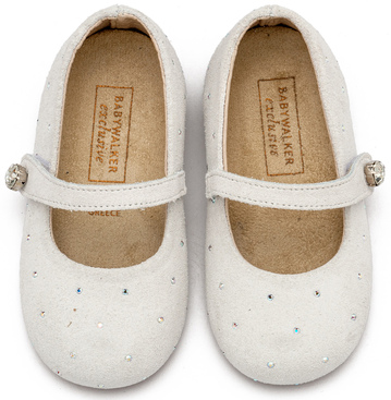 LU6009-WHITE1 Γοβάκι από Suede Δέρμα Διακοσμημένο με Στρας Swarovski σε Λευκό Χρώμα