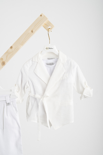 BFA25S17.OFFWHITE Κοστούμι Piccolino Stefan σε χρώμα Off White. Περιλαμβάνει βισκόζη πουκαμίσα με δέσιμο με ζωνάκι, βαμβακερό λευκό μπλουζάκι, παντελόνι λινό βράκα με πιέτες λευκό, ζωνάκι και φουλάρι. Διαθέσιμο σε 4 μεγέθη 6-12, 12-18, 18-24, 24-36(εξτρά χρέωση)
