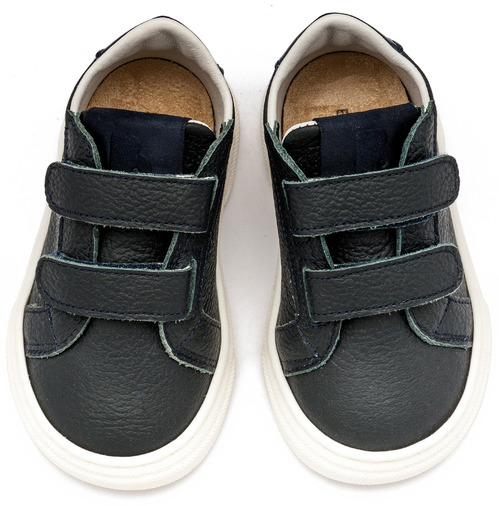 BW4267-BLUE1 Μονόχρωμο Δερμάτινο Σνίκερ με Διπλή Μπαρέτα Χρατς σε Μπλε Χρώμα