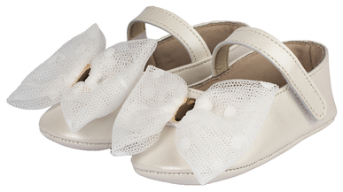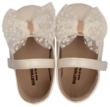 MI1573-IVORY1 Δερμάτινη Μπαλαρίνα με Τούλινο Φιόγκο σε Εκρού Χρώμα